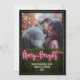 Pink neon sign inspired "Merry + Bright" design with boxwood greenery background and white trim. Personalize the text and photo.