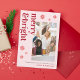 Merry Bright Pink Red Team Photo Business Xmas Holiday Card