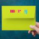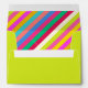 Your holiday greetings will stand out with this merry Bright Rainbow Stripes Christmas Tree in Pear Green. Delightful details abound. On the front, a unique geometric colourful star-topped tree with your return address in coordinating colours. The envelope flap features a multicolor "merry" and the inside is printed with colourful rainbow stripes. A maximalist Christmas envelope with distinctive modern style.