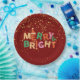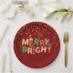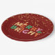 Add festive flair to your holiday gatherings with this vibrant "Merry & Bright" paper plate. Featuring bold multicolor lettering on a deep red background with sparkling gold confetti accents, this cheerful design is perfect for Christmas parties, family dinners, or office celebrations. Durable and disposable, it combines convenience with style for effortless entertaining.
