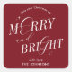 Merry & Bright Red Elegant Script Modern Christmas Square Sticker