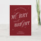 Merry & Bright Red Elegant Script Modern No Photo Holiday Card