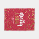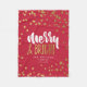 Red blanket with faux gold stars sprinkled around Merry & Bright and your family name and year established.