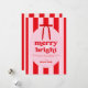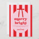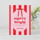 Merry & Bright Red Pink Stripes Holiday Card in a modern retro style