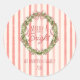 Merry & Bright Red Stripes Christmas Bow Wreath Classic Round Sticker