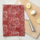 Merry & Bright Script Calligraphy Red Christmas Tea Towel