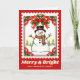 Merry & Bright Snowman Christmas Postage Stamp Holiday Card