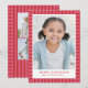 Merry bright stripe cute pink red Christmas photo Holiday Card