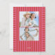 With a pink and red stripe frame, this vertical holiday photo card features one large photo on the front and two more photos on the back. The cute and colourful Christmas card design is great for a family holiday card, a couple's holiday card and more. The pink and red striped frame has the look of gift wrap ribbon. This is the perfect merry and bright design and it also has room for a custom message on the front along with family name. Find more colours and cute, coordinating merry and bright stripes in the collection by Lea Delaveris Design. Also available as a digital holiday card download.