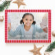 Merry bright stripe pink red frame Christmas photo Holiday Card