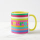 Celebrate the holidays in bright modern style with this merry rainbow stripe holiday mug, A colourful gift that is certain to delight family, friends, and co-workers who appreciate colour with their coffee or tea. Bright striped background with a star topped geometric stripe Christmas tree. merry text completes the festive vibes.