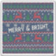 Embrace the cozy charm of the holidays with this playful ugly Christmas sweater design. Set against a deep navy blue background, bold red reindeer leap among vibrant green evergreen trees, all outlined in crisp white stitching. Delicate snowflakes and zigzag patterns enhance the winter wonderland vibe, while the cheerful, slightly distressed white font reads "MERRY & BRIGHT" at the center. Perfect for celebrating festive gatherings, cozy nights by the fire, or sharing warm holiday wishes, this design radiates cheerful, snug holiday spirit.