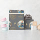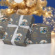 Modern personalised Christmas gift wrapping paper. The template is set up ready for you to add your favourite photo and your custom text. The design has a winter wreath with the wording "Merry and Bright" with stars and confetti dots. The colour palette is a contemporary pewter grey and soft gold. Please browse our store for matching and coordinating Christmas cards, gift wrapping and decor.