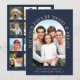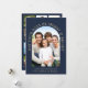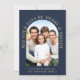 Modern dark nay blue Christmas holiday card featuring your photo showcased in an arch frame, "May Your Days Be Merry & Bright" in elegant gold serif typography and your name and a seasonal greeting in simple gold lettering. The back features a year in review photo collage of your favourite people and moments from the past year.