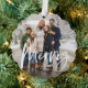 Merry brush script two photo red Christmas Tree Decoration Card