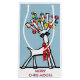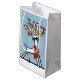 Funny Christmas gift bag featuring a moose in a fed scarf with Christmas lights in his antlers