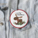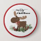 This whimsical moose is just adorable with a red ribbon bow tied around his neck. He's standing amongst pine boughs and berries. The text above reads "Merry ChrisMoose". This is such a fun pin to wear during the holiday season! Kids will love it too. Available in a variety of sizes.