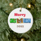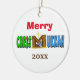 Jesus aka the Christ Child is the centre of both the Jewish and Christian religions. Therefore, I made the "M" in Chrismukkah as the manger to represent that. Customise this with the year on the front and a Name on the back if you wish.