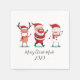 Cute and trendy Christmas paper napkin featuring Santa, Snowman, and the Reindeer all in a mask while staying "6 feet" apart. Customise the text by clicking on the "Personalise" link above to add something unique to this ornament
