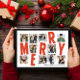 With a bold and bright MERRY, this photo Christmas card is a great unique way to send holiday cheer. The ten photo collage is perfect for showing off highlights from the year, favourite family photos, vacation photos, grandkids and more. The original holiday card by Lea Delaveris Design features 8 square images and two vertical with MERRY in festive red letters. This Christmas card is also available as a digital download.