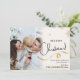 Spread holiday cheer with this modern and elegant Merry Christmas card featuring a full-size family photo on the front, accented with shimmering gold snowflakes and delicate glitter details. The festive yet minimalist design incorporates a soft white background paired with a refined script font for the "Merry Christmas" greeting. The back side features a charming, hand-painted watercolor pattern of Christmas trees, snowflakes, and gift boxes, creating a cohesive yet playful balance. Thank you for visiting.