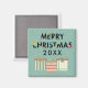 A pretty Christmas kitchen magnet with a modern style Typography design and gift box graphics. The front reads "Merry Christmas 20XX" a template for you to change your preferred year