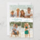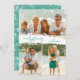 Merry Christmas and your family name in chic turquoise lettering is on a splash of snow in the middle of your favorite three photos. A blurred lights accent borders the front and the back where your personal family greeting is featured. Select High Definition for best photo quality.