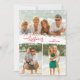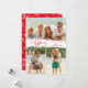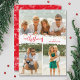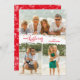 Merry Christmas and your family name in chic red lettering is on a splash of snow in the middle of your favorite three photos. A blurred lights accent borders the front and the back where your personal family greeting is featured. Select High Definition for best photo quality.
