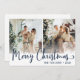 This fabulous photo collage Christmas card with 3 photos, Merry Christmas in a modern script font, and your family name and year would be perfect for sending to your friends and family. Everyone will love getting new photos of your adorable kids or beautiful family. The fonts are modern and clean in navy blue. To make this card your own, simply select Personalise this template, upload your favourite photos of your children or family and type in your family name and the year. It's super easy! In just seconds you will see your unique and fabulous photo holiday cards.