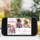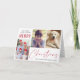 Modern holiday folded greeting card with a 3 photo collage, "We Wish You A Very Merry Christmas" in mix of simple typography and an elegant red script and your name and the year. Add your personalised message an first names or other text on the inside.