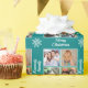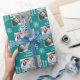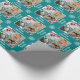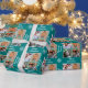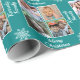 Merry Christmas 4 Photo Collage Family Name Teal Wrapping Paper
