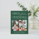 Elegant green holiday postcard with "Merry Christmas" in stylish white vintage typography, "happy new year" and a greeting in white modern typography, 3 of your favourite photos and your name. On the back, add a 4th photo and personalise your seasonal message to friends and family.