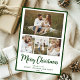 This beautiful photo collage Christmas card with 4 photos, Merry Christmas in a modern brush script font, a customisable sentiment, your names and the year would be perfect for sending to your friends and family. Everyone will love getting new photos of your beautiful family. The fonts are modern and clean in green.