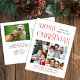 Elegant holiday postcard featuring "Merry Christmas" written in stylish vintage red typography, "happy new year" and a greeting in modern red typography, three of your favourite photos and your name. On the back, add a 4th photo and personalise your seasonal message to family and friends.