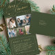 Elegant stylish year in review Merry Christmas faux gold classic calligraphy script five family photos hunter green holiday card with your custom personalised text on both sides.