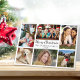 Modern photo collage folded holiday card featuring "Merry Christmas" in an elegant script, 6 pictures of your favourite people and moments from the last year and your family name and the year in simple typography. On the inside, personalise your greeting or leave blank.