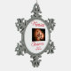 Merry Christmas add family name photo red simple m Snowflake Pewter Christmas Ornament
