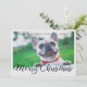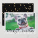 Modern Christmas Card features black back with gold look dots, and your name and favourite photo on the front with pretty Merry Christmas greeting.