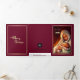 Merry Christmas. Elegant Festive African American Nativity Art design with gold foil frame personalised Christmas Tri-Fold Holiday Card. Original painting by Carlos Maraz, Spain, 2010. Copyright © Carlos Maraz. Matching Posters, Fine Art Prints, Wall Art, Canvas Prints, cards and gifts available in the Christmas Category of our store.