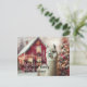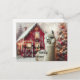 Merry Christmas with an Alpaca a decorated Christmas tree and red barn personalised Postcard