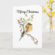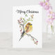 Merry Christmas with painted watercolor American Goldfinch bird with berries. Art by Jenn Steffen, Jenn's Emporium.