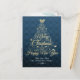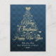 Blue Diamond Pattern Holly Merry Christmas Happy New Year Typography Christmas Party - Gold Sparkle Glitter Christmas Tree Illustration Bokeh Lights Postcard.