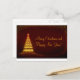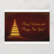 Merry Christmas and Happy New Year card. Christmas golden Tree and lights.