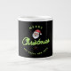 This image displays a "Merry Christmas and Happy New Year" greeting card with a striking and contrasting design. The deep black background highlights the word "Christmas," which is written large and bold in a bright, neon lime-green cursive style, accompanied by an illustration of a smiling Santa Claus head at the top. The overall design has a modern and festive feel, with essential red and green color accents for the celebration.