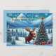 Merry Christmas and Happy New Year Moose in the mountains decorating a Christmas tree Holiday Card