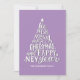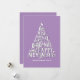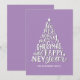 "We wish you a Merry Christmas and Happy New Year" purple lettering card.
