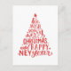 "We wish you a Merry Christmas and Happy New Year" red lettering postcard.