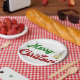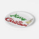 Paper plates with this shirt with Merry Christmas in 3D green and red text and an angel. Plates available in several sizes.