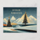 Merry Christmas Art Deco card with winter landscape and mountains. Modern Abstract.