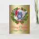 Beautiful painting of this Adorable Pygmy goat baby -She wearing a Santa hat surrounded by a festive Christmas Wreath all on a gold background which easily can be removed to reveal a white background if you like - inside a Christmas farm scene surrounded by the same Christmas wreath and customisable inside sentiment - Goat Christmas Cards for goat lovers to send as a unique Holiday Card wishing Merry Christmas - © Original artwork by GetYerGoat.com AKA goatlady